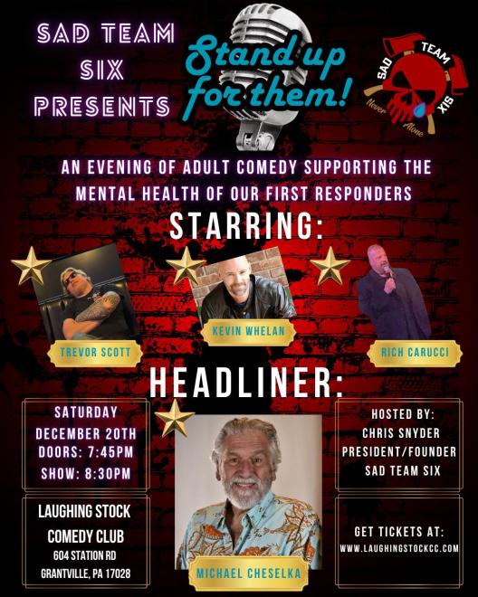 An Evening of Comedy Supporting the Mental Health of our First Responders (Sad Team Six) Featuring Michael Cheselka, Trevor Scott, Kevin Whelan and Rich Carucci